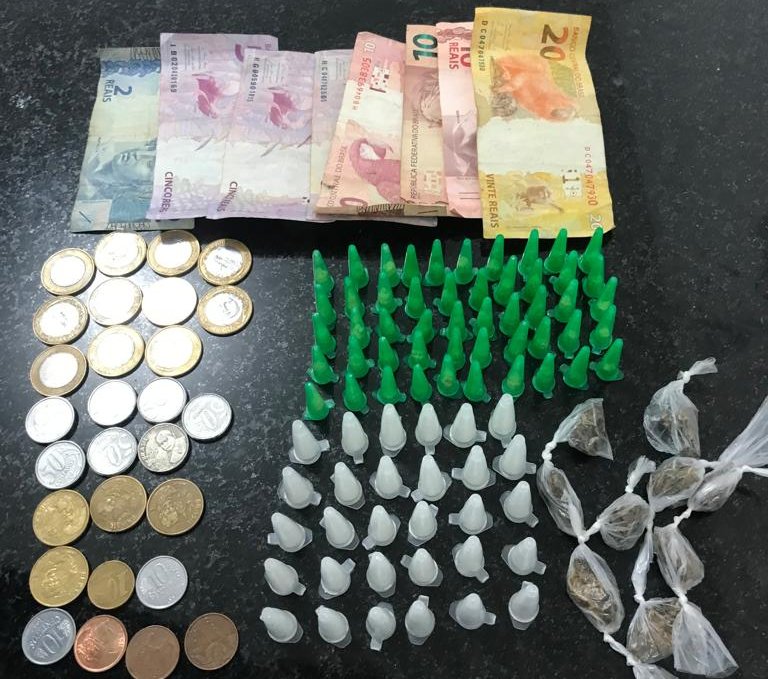 Após ser realizada a revista pessoal foram encontrados com o menor 47 porções de crack, 30 de cocaína, 10 de maconha e R$ 82,95 em dinheiro.
