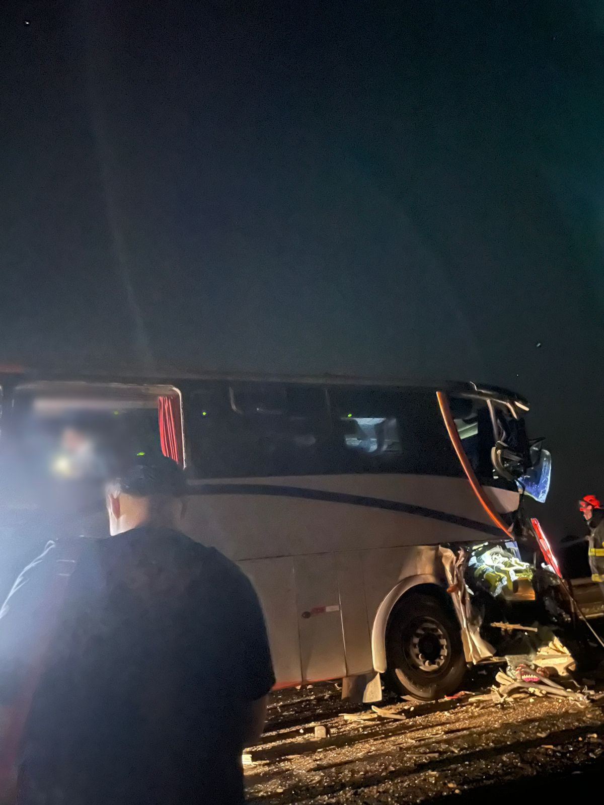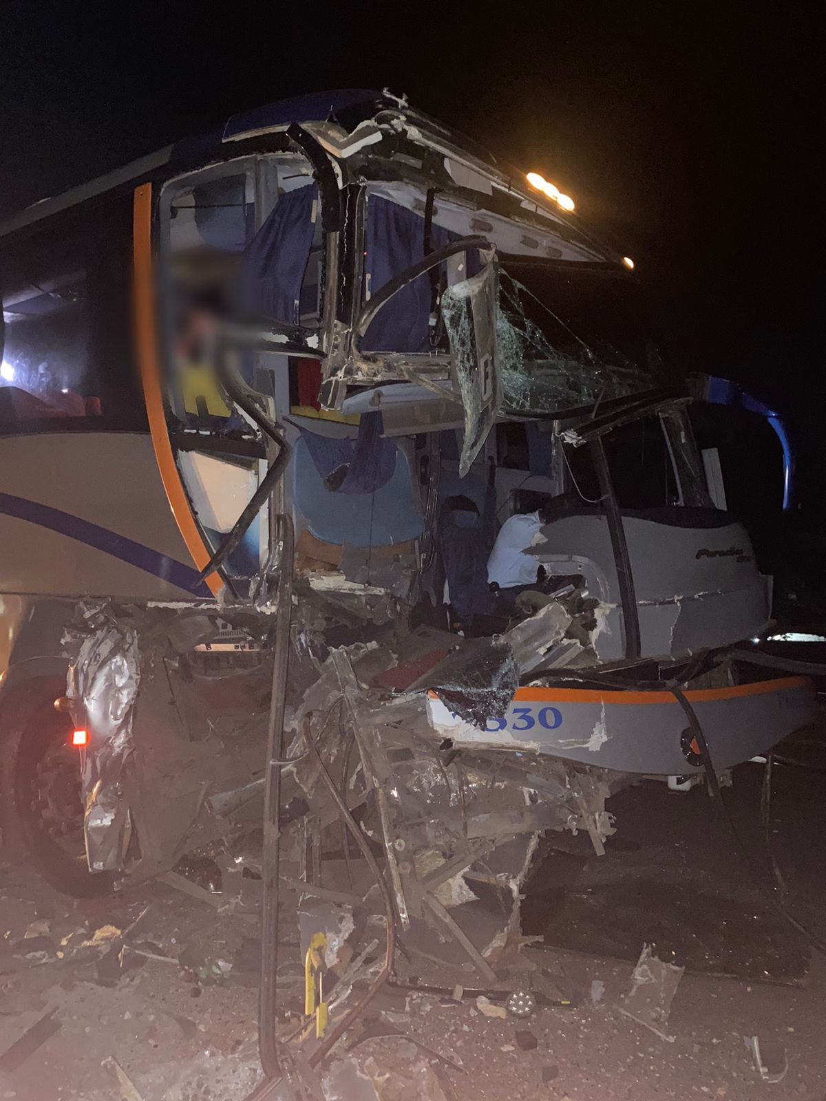 As causas ainda serão apuradas. Devido ao impacto, houve danos à parte frontal do ônibus, em local destinado aos viajantes.