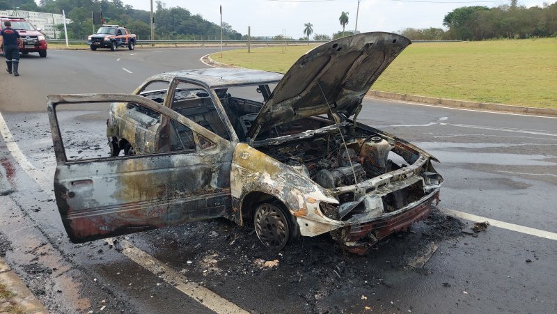 Um Volkswagen Logus pegou fogo no início da tarde desta segunda-feira, 25 de setembro, na avenida Braz de Assis Nogueira, na região Leste.