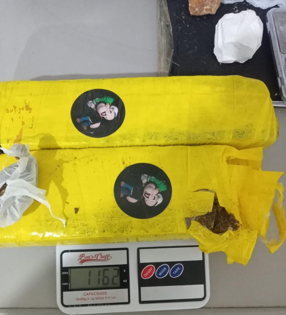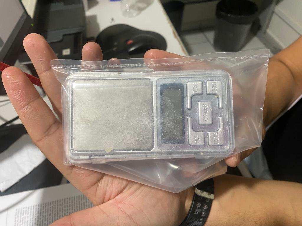 Durante a verificação foram encontrados 1,143 quilo de maconha, 84 gramas de cocaína e 30 gramas de crack, além de uma balança de precisão com resquícios de cocaína.