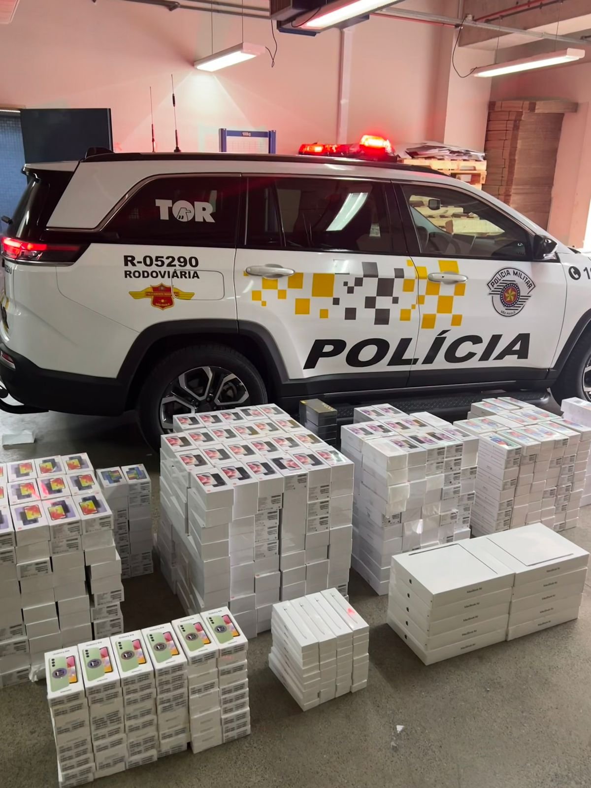 O caso foi registrado por volta das 6h30 na Rodovia Castello Branco (SP 280), em Quadra. Ao todo foram apreendidos 804 aparelhos eletrônicos entre smartphones, tablets e smartwatches.