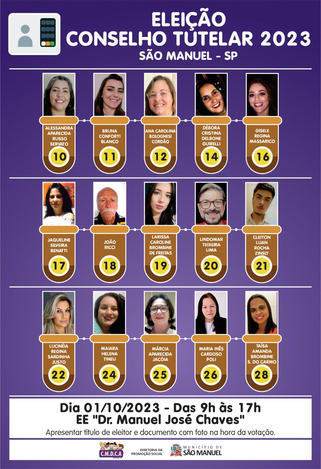 A eleição para escolha dos novos membros do Conselho Tutelar será realizada no próximo dia 1º de Outubro, na Escola Estadual “Dr. Manuel José Chaves”, das 09h às 17h. O voto é secreto, direto, facultativo e só é permitido escolher 1 (um) candidato.