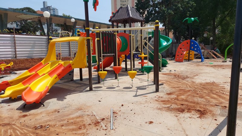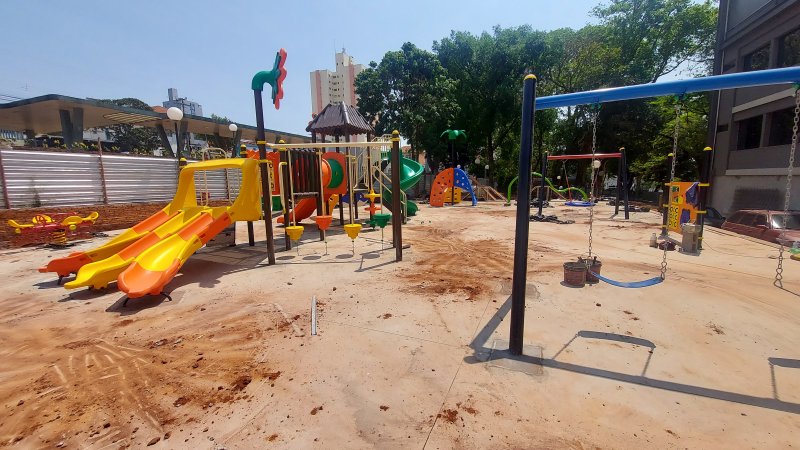 Segurança reforçada: para garantir a segurança de todos, a área do parque é totalmente cercada com alambrado, contendo intervenções visuais lúdicas que estimulam a imaginação.