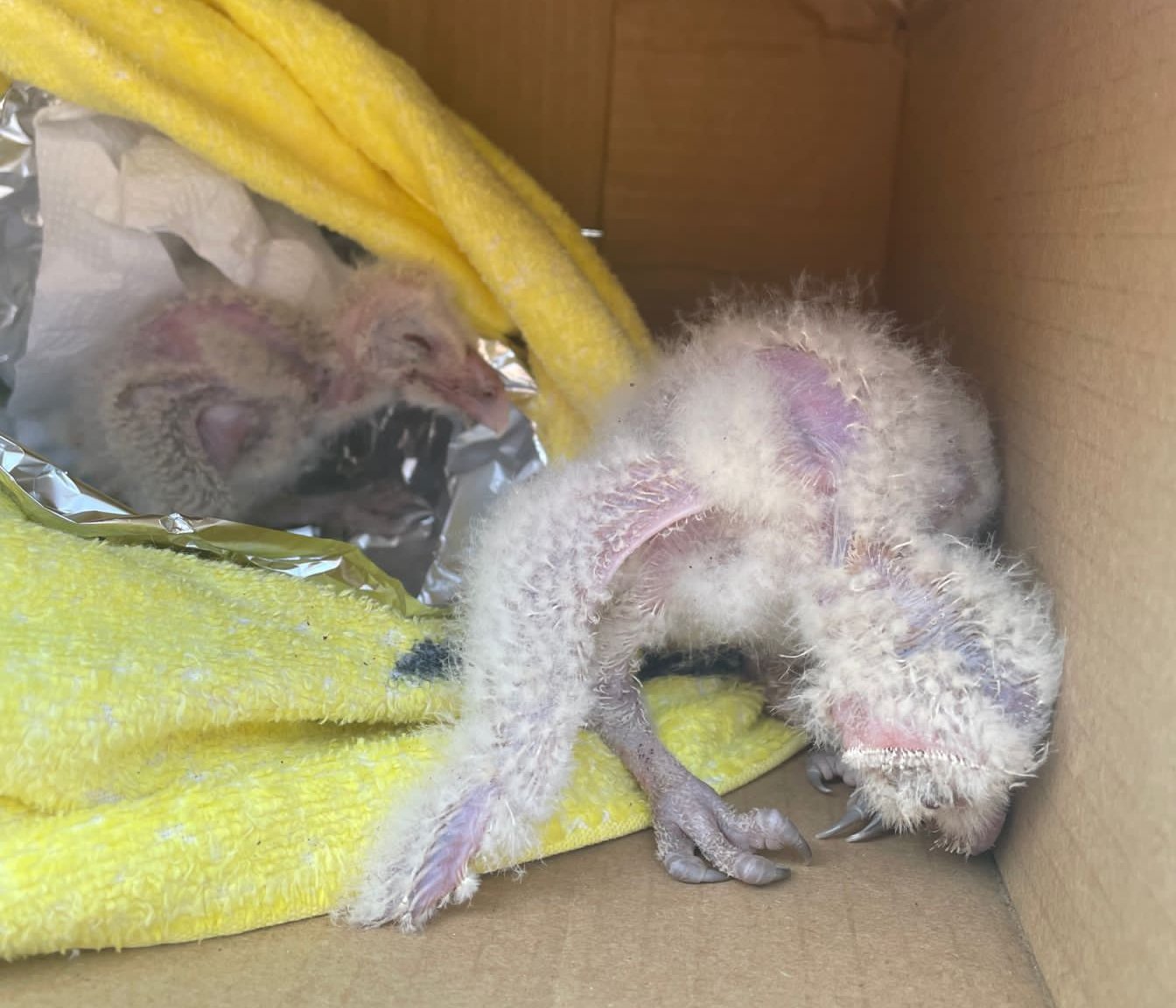 Filhotes de coruja são resgatadas após queda de árvore em temporal