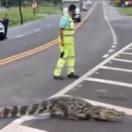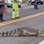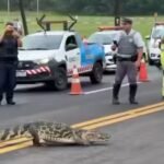 A Polícia Militar Rodoviária precisou intervir e paralisar o trânsito por 20 minutos para que o animal fizesse a travessia em segurança e os motoristas não se ferissem. Um comerciante que possui restaurante à beira da rodovia viu o jacaré iniciando a travessia e acionou a concessionária responsável pelo trecho.