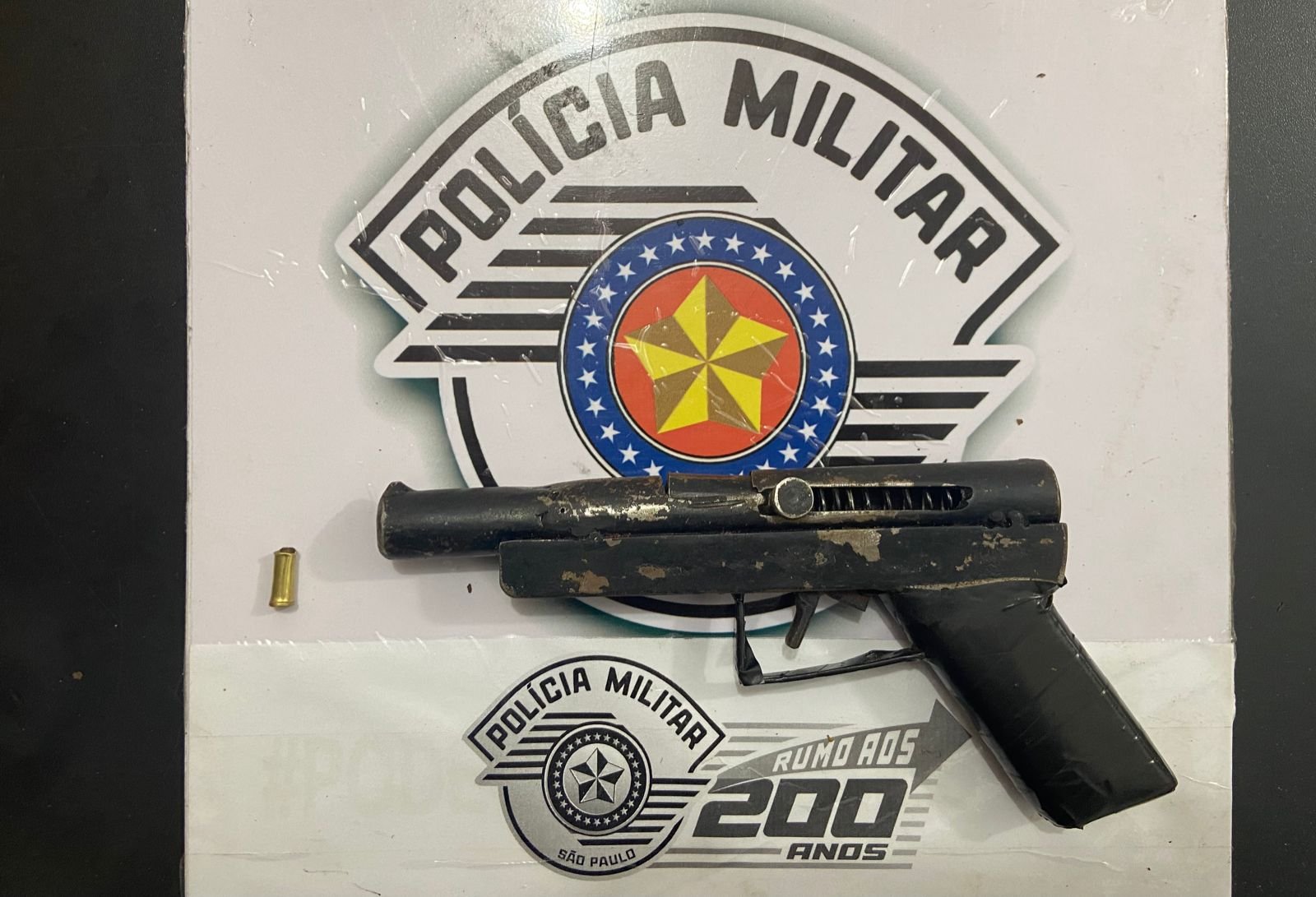 Abordado, o suspeito, R.H.L., disse que tinha efetuado os disparos com uma pistola e que a arma estava enterrada no quintal da casa, atrás de uma plantação de bananas. Também admitiu que não tinha nenhum registro de porte do objeto.