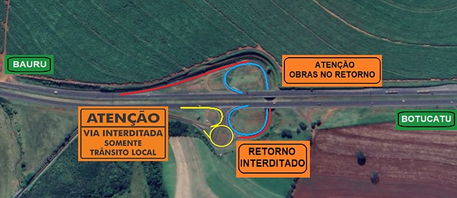 A Rodovias do Tietê interditou, desde 23 de outubro, a alça de retorno para a cidade de Bauru, no km 257+800 da rodovia Marechal Rondon (SP-300).
