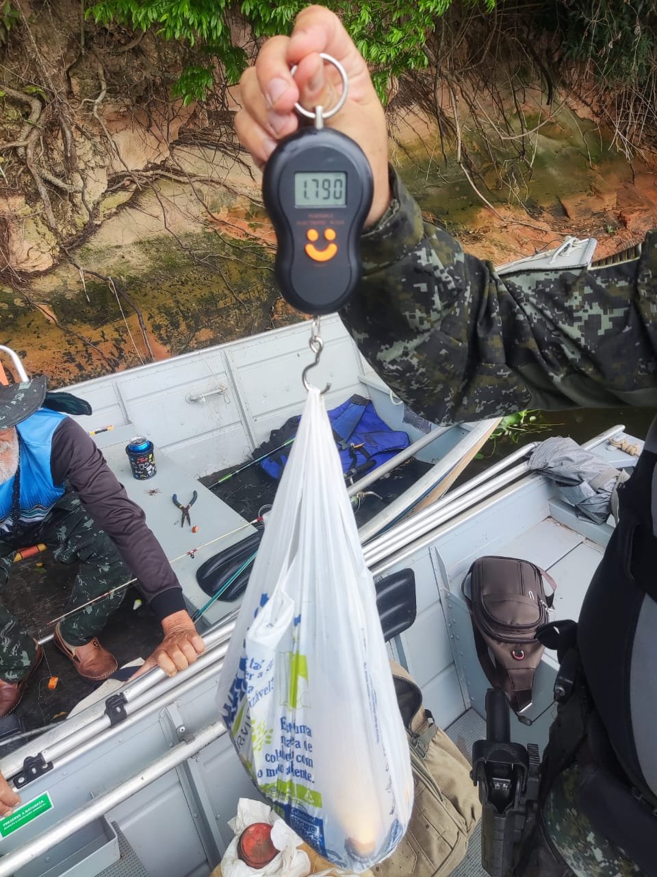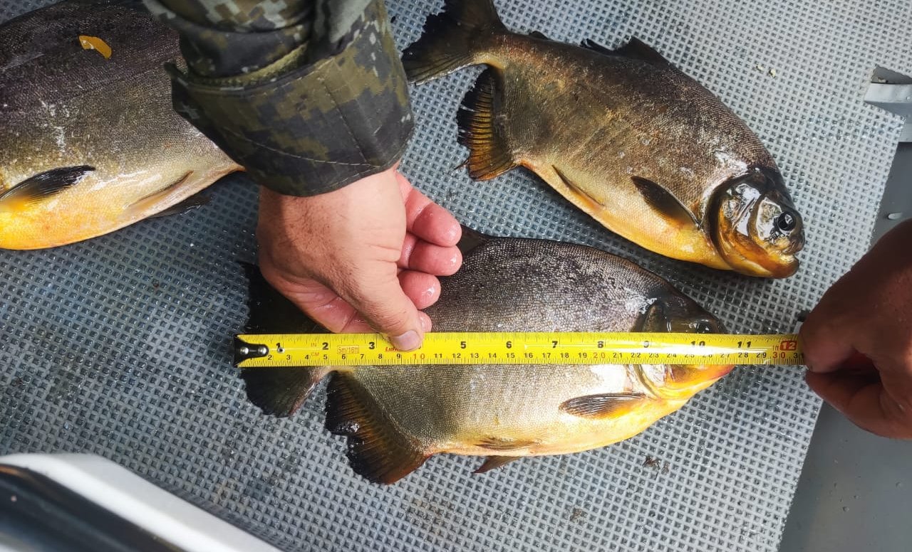 Na averiguação da embarcação, havia três peixes da espécie Pacu dentro do embornal, ainda vivos, mas com medidas inferiores às autorizadas em lei para pesca.