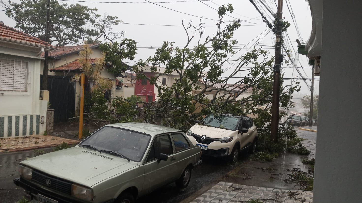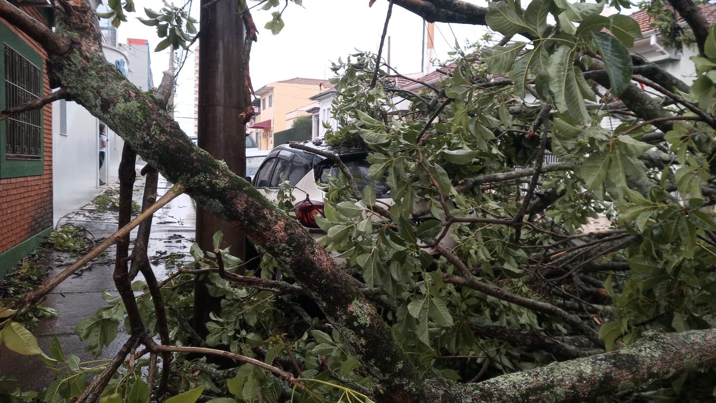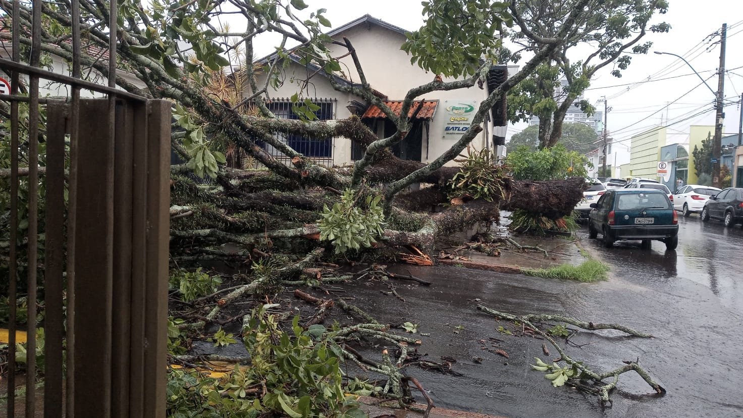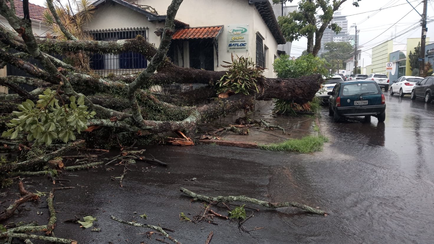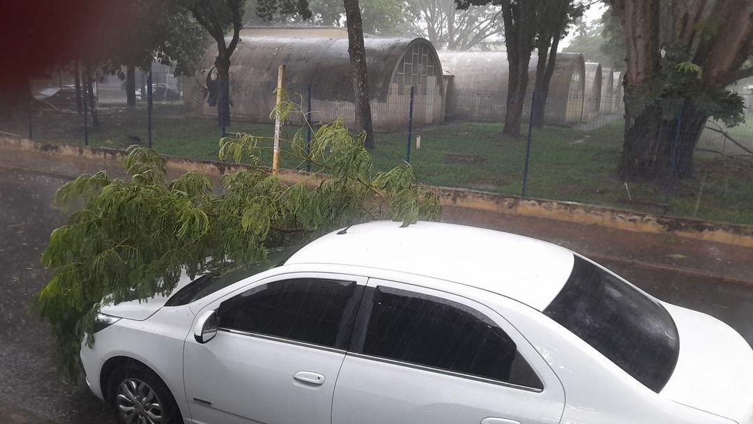 Na Rua Dr. Campos Salles, também no Centro, um galho atingiu um carro que trafegava pela via.