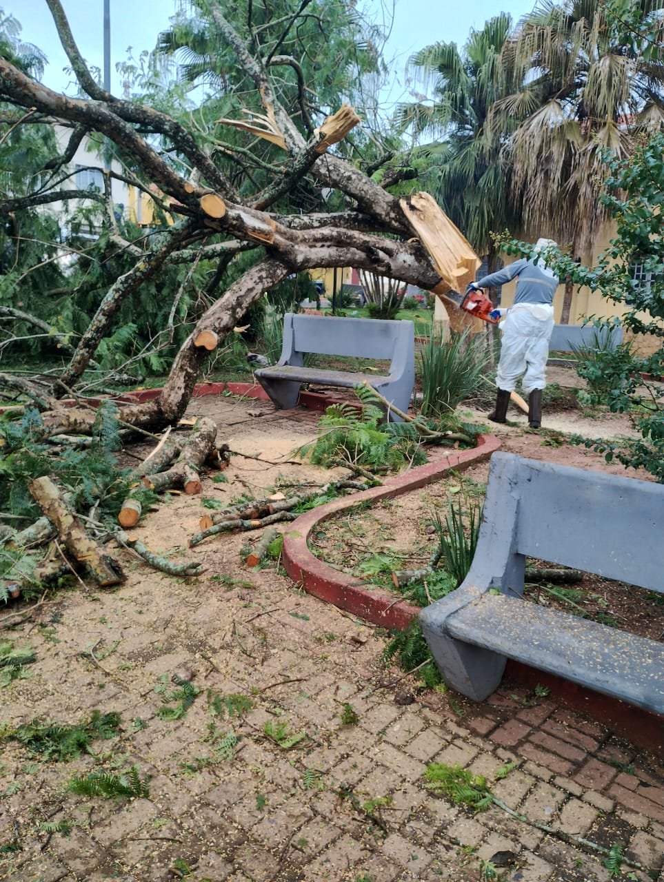 Houve registro de diversos danos a residências com árvores atingindo telhados