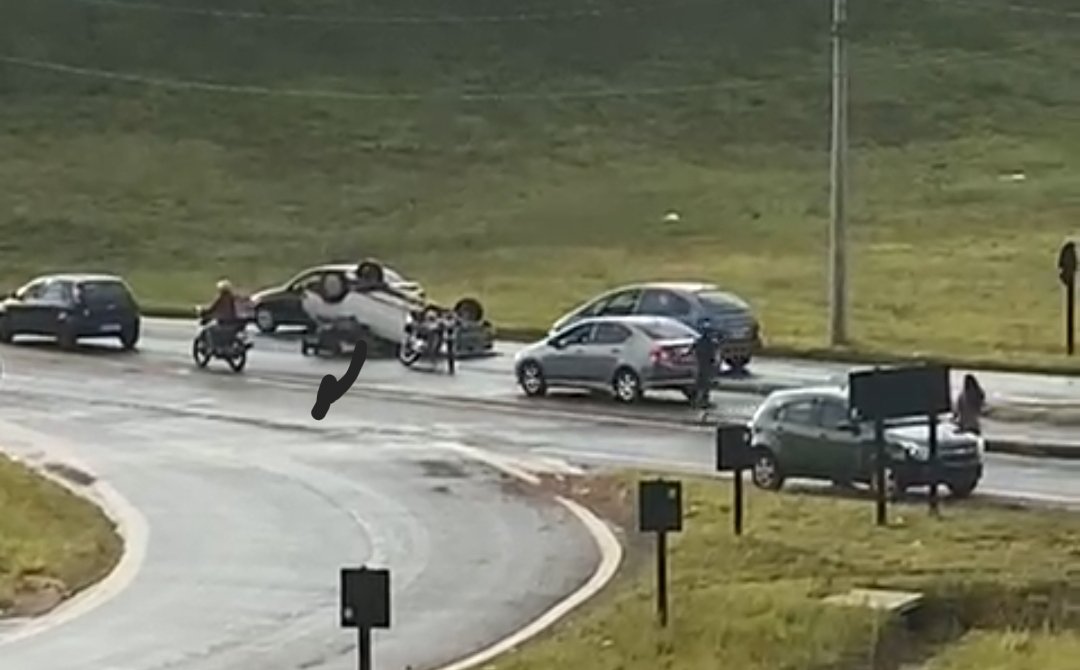 Ainda por motivos a serem apurados, um Volkswagen Gol colidiu contra um Chevrolet Agile e, devido ao impacto, tombou e ficou com as rodas para cima.