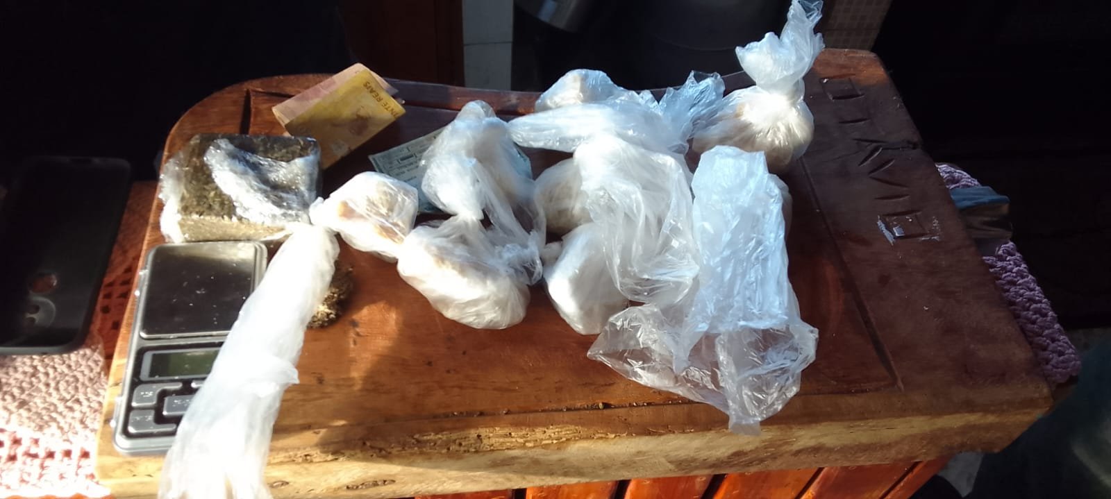 Foram apreendidos ainda telefones celulares, balanças de precisão, sacos plásticos utilizados para acondicionar maconha, cadernos com anotações alusivas ao tráfico, além de R$ 2,5 mil em espécie, valor que, segundo os policiais, foi obtido com o comércio ilícito de substâncias entorpecentes.