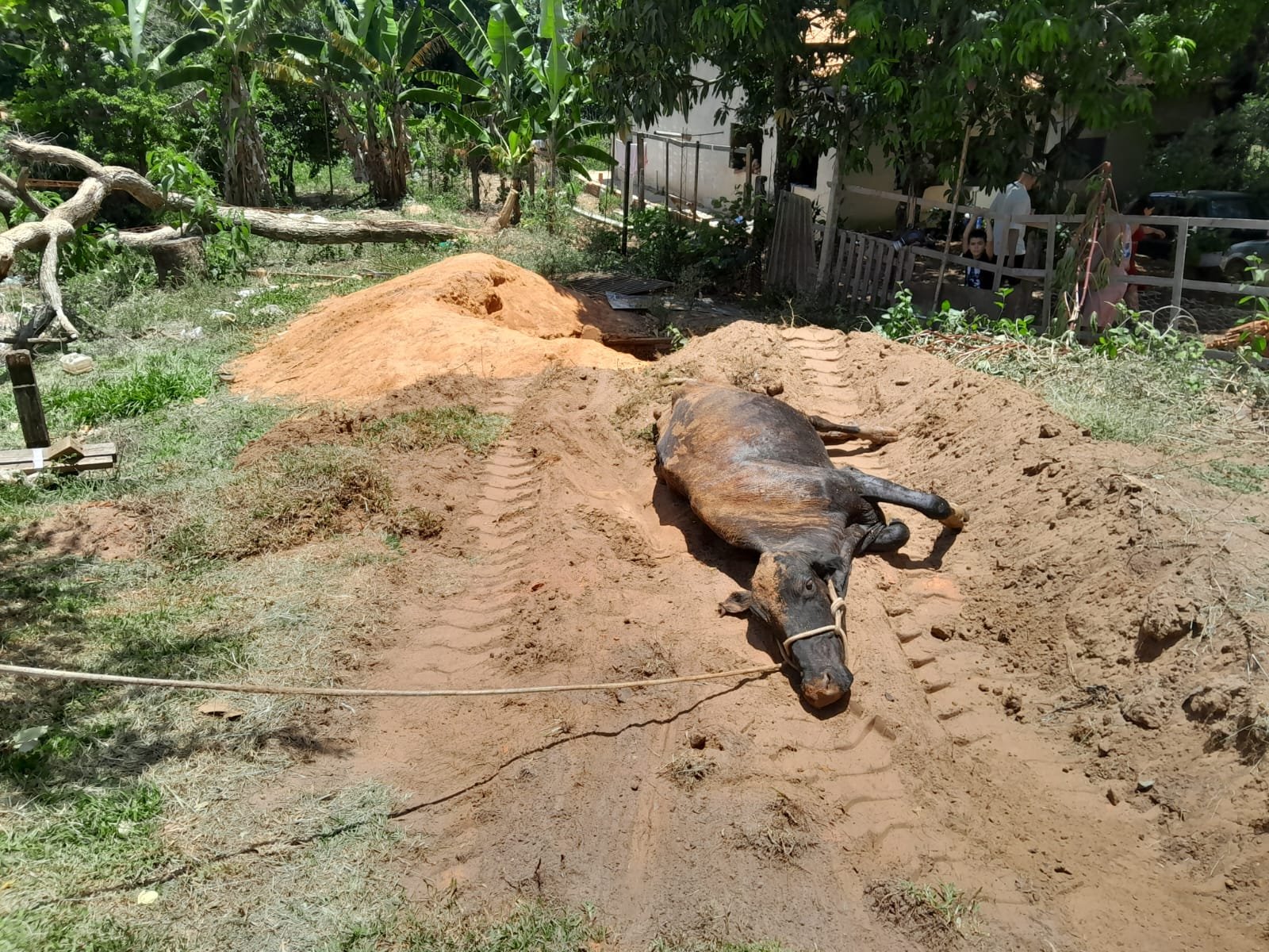 O caso foi registrado em sítio na estrada Serra D’água, no Califórnia 1. O animal caiu no fosso da propriedade rural, sendo necessário o acionamento de ajuda.