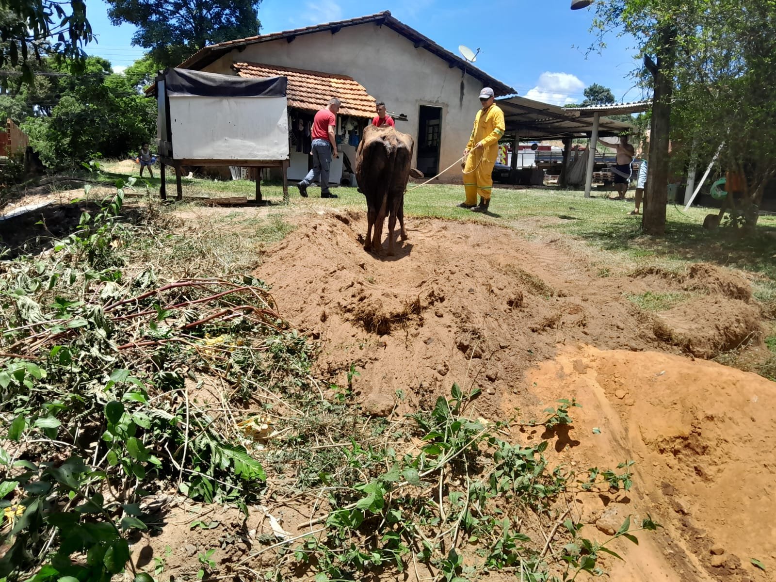 Na manhã desta segunda-feira, 25 de dezembro, ação conjunta da Defesa Civil e Corpo de Bombeiros resgatou uma vaca que caiu em fossa, na área rural de Botucatu.