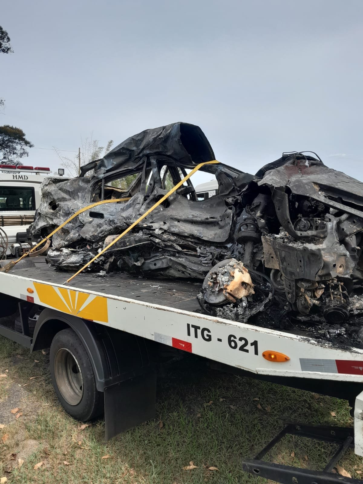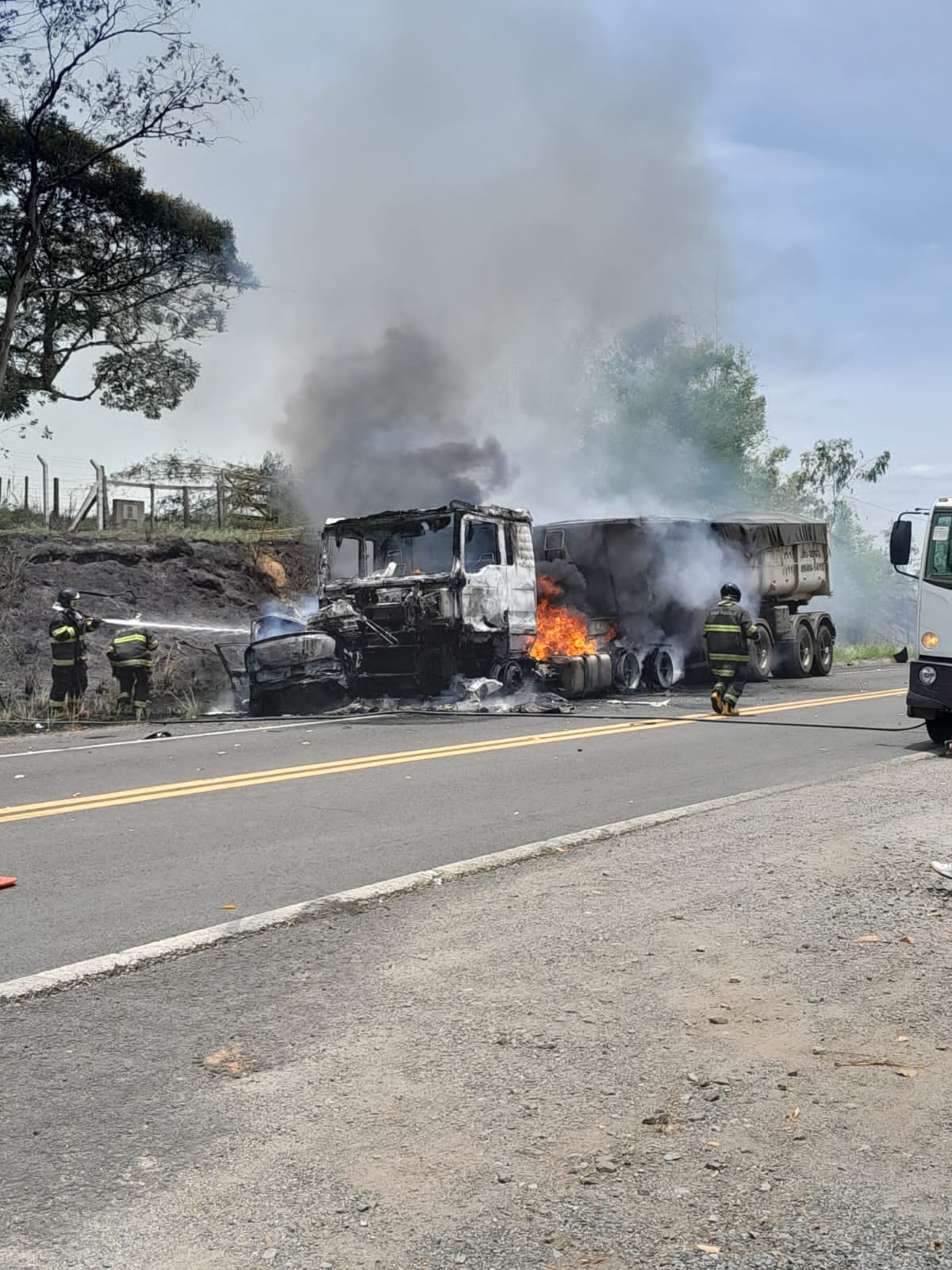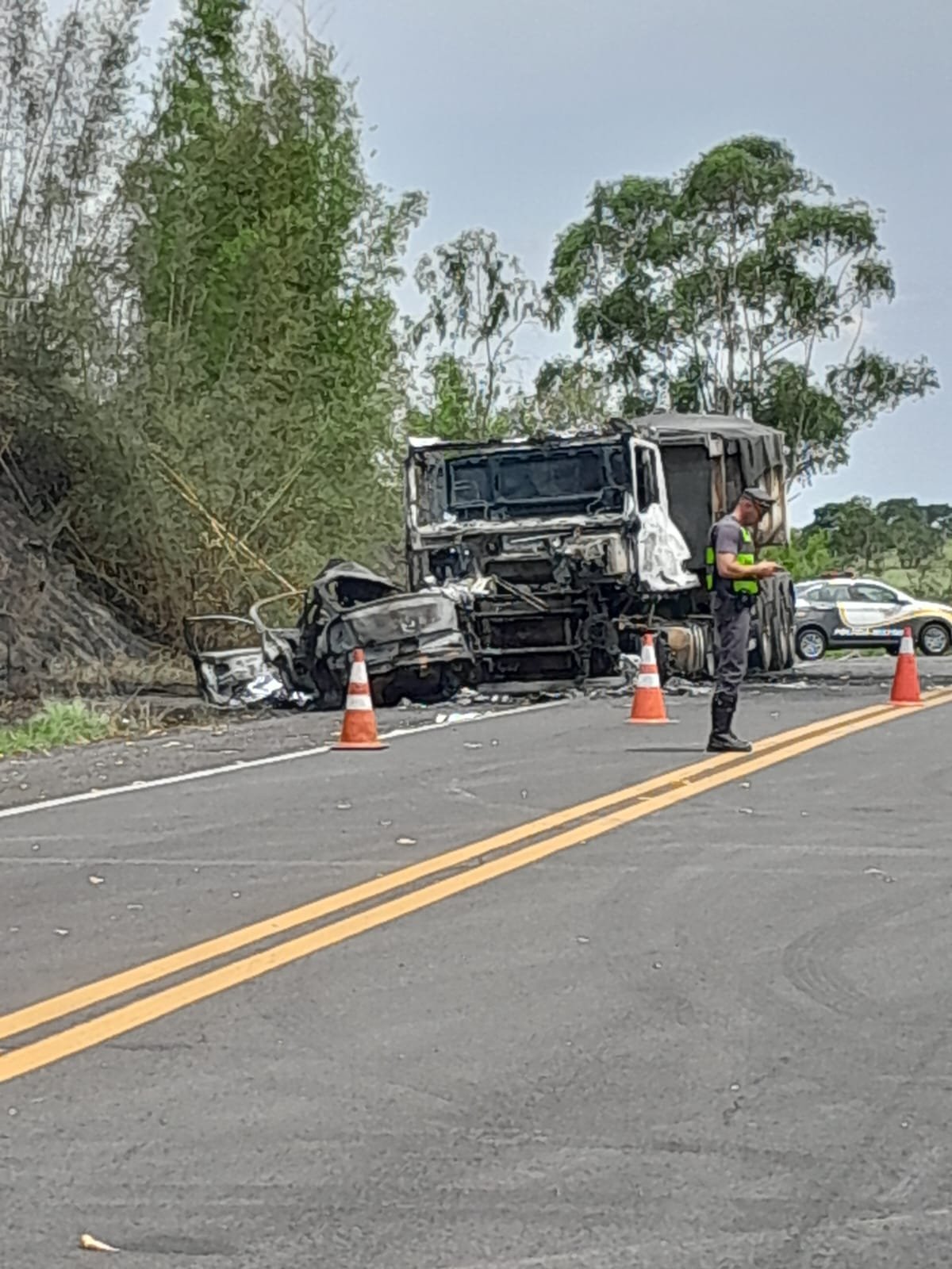 Os dois veículos pegaram fogo após a colisão. O motorista do carro morreu na hora. Aind nao ha identidade da vítima. Já o condutor do caminhão não teve ferimentos.