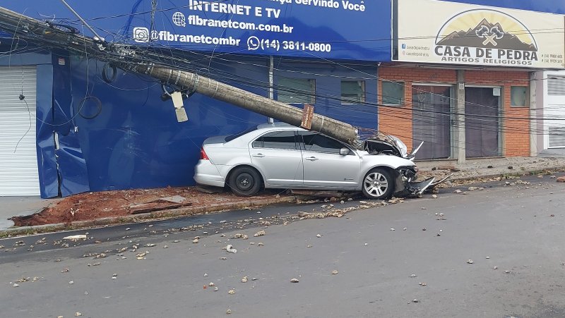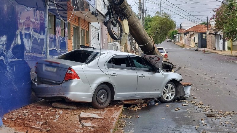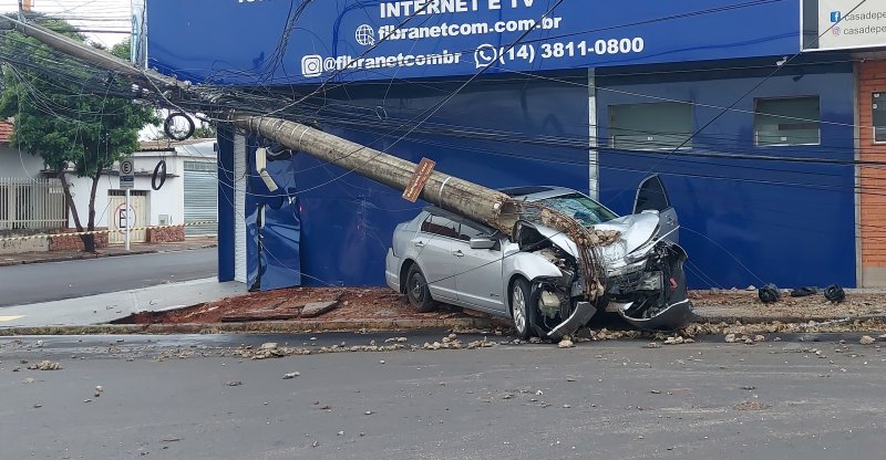 Carro arrasta poste e provoca queda de energia em bairro de Botucatu