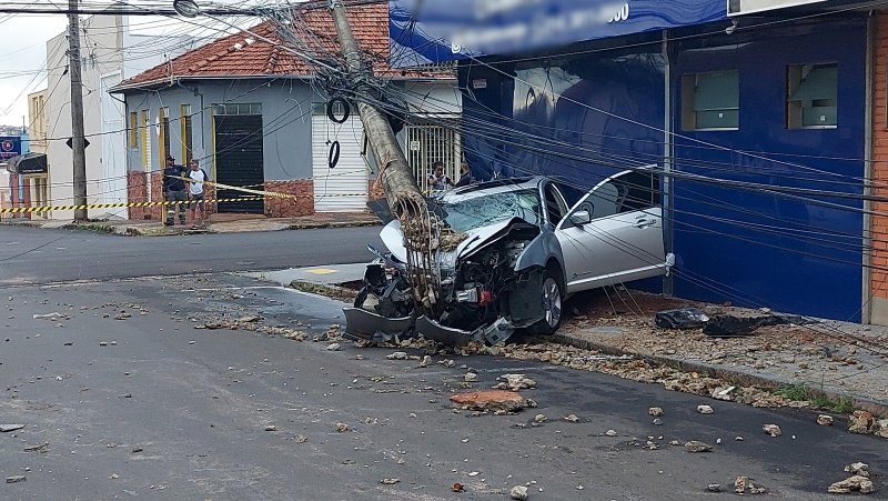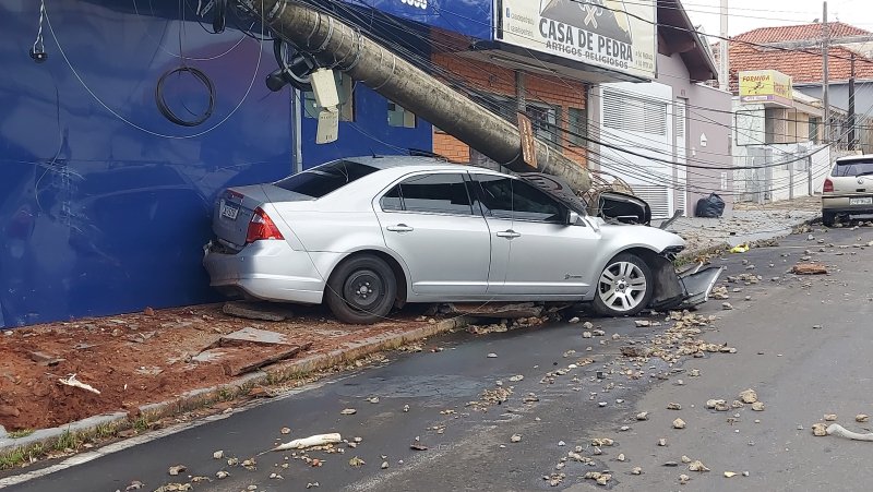 Por volta das 3 horas, um Ford Fusion colidiu contra poste na esquina da Rodrigues César com a Cesário Motta, vindo a arrancar e arrastar a estrutura por cinco metros.