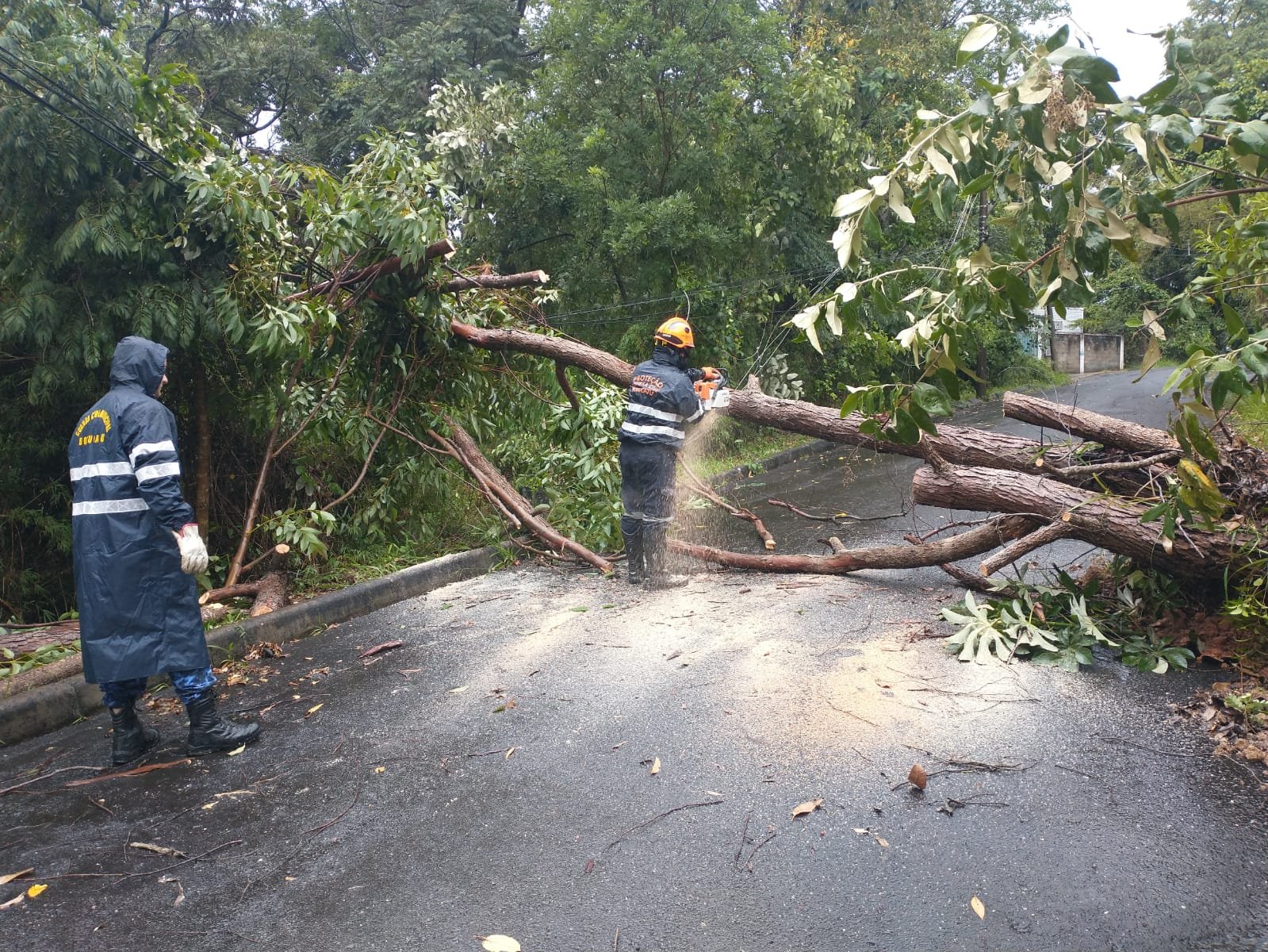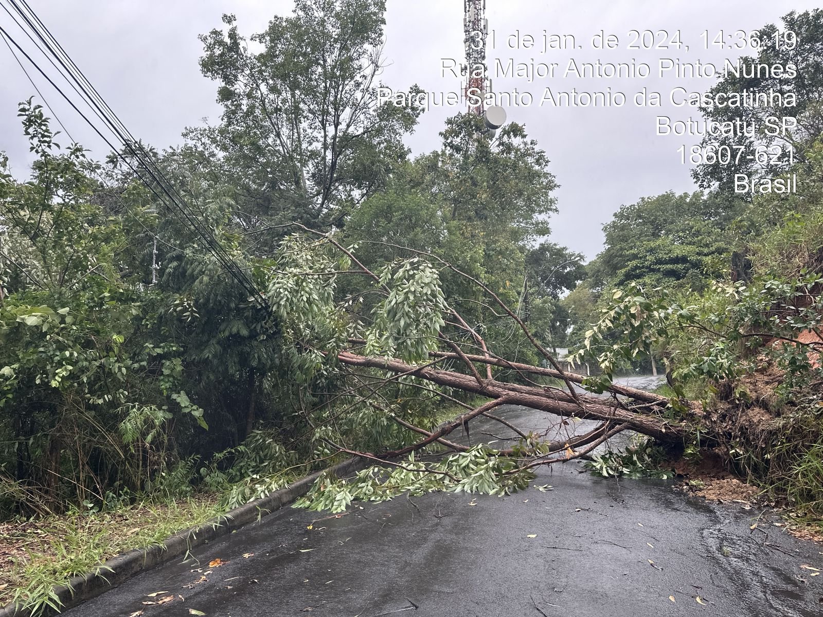 Além da chuva, o forte vento ocasionou a queda de árvores na Rua Major Antônio Pinto Nunes, trecho de subida para acesso à Igreja de Santo Antônio, em Rubião Júnior. O trecho teve o fornecimento de energia elétrica interrompido.