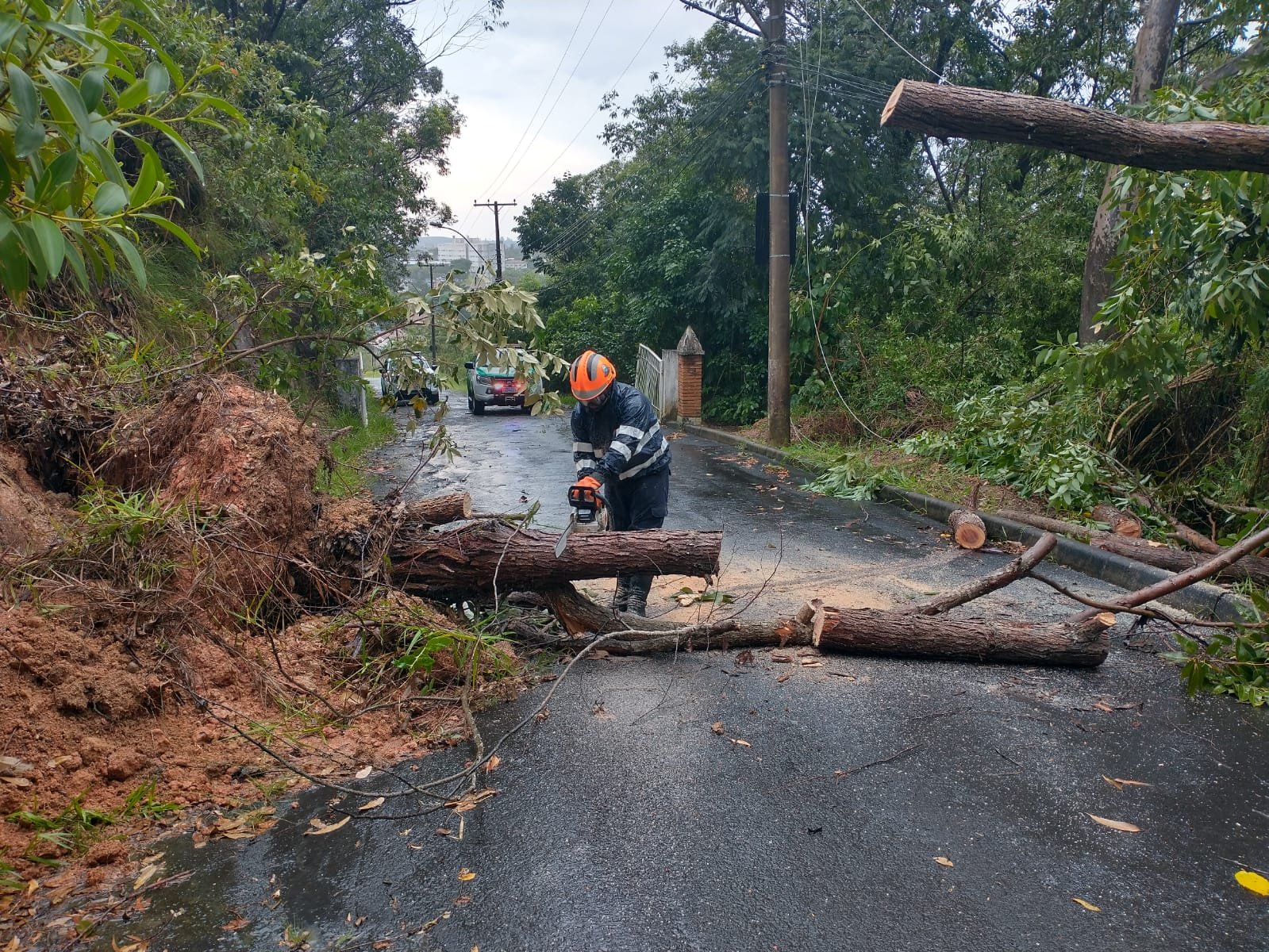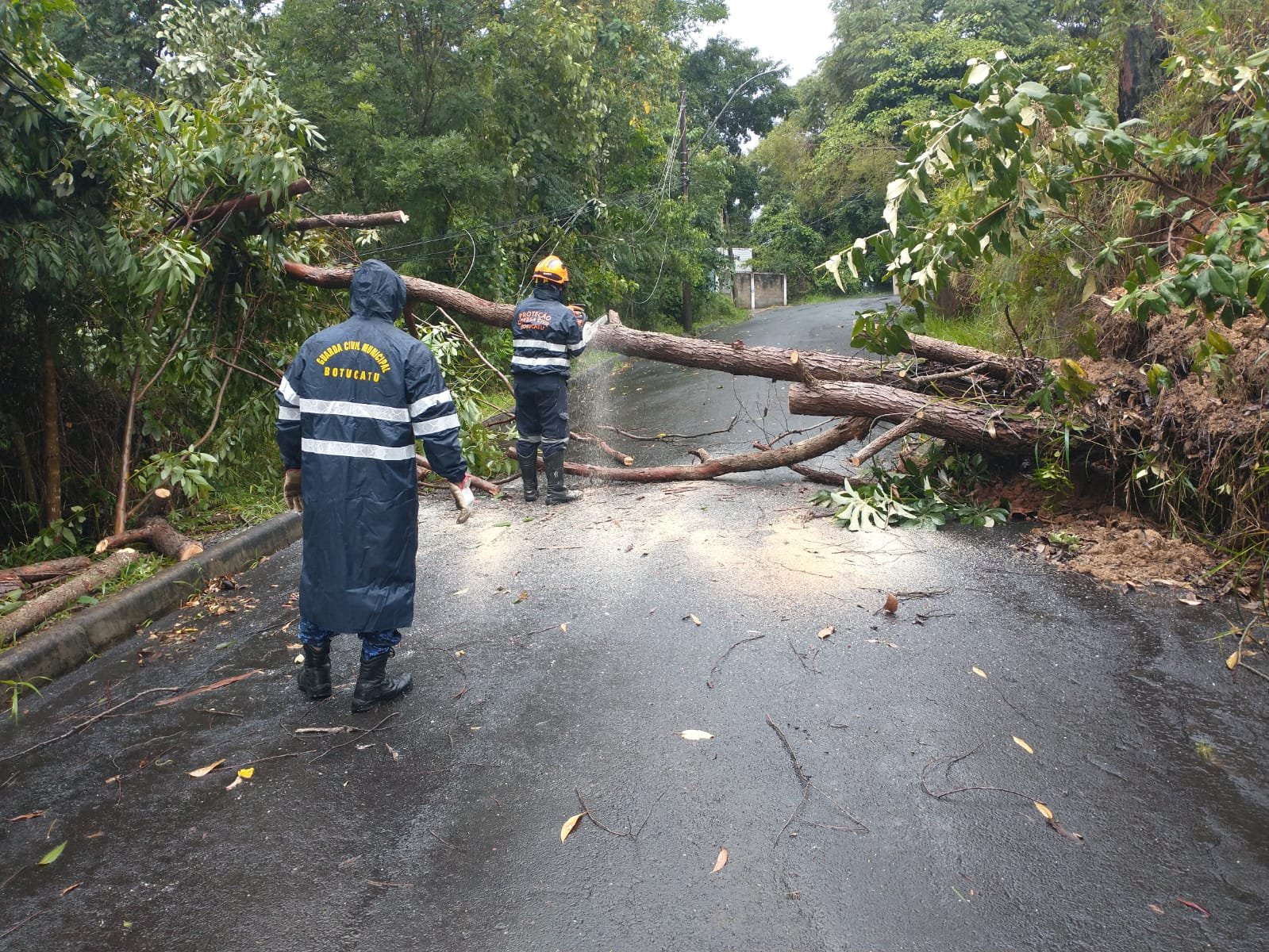 Temporal causa queda de árvores e poste em Botucatu