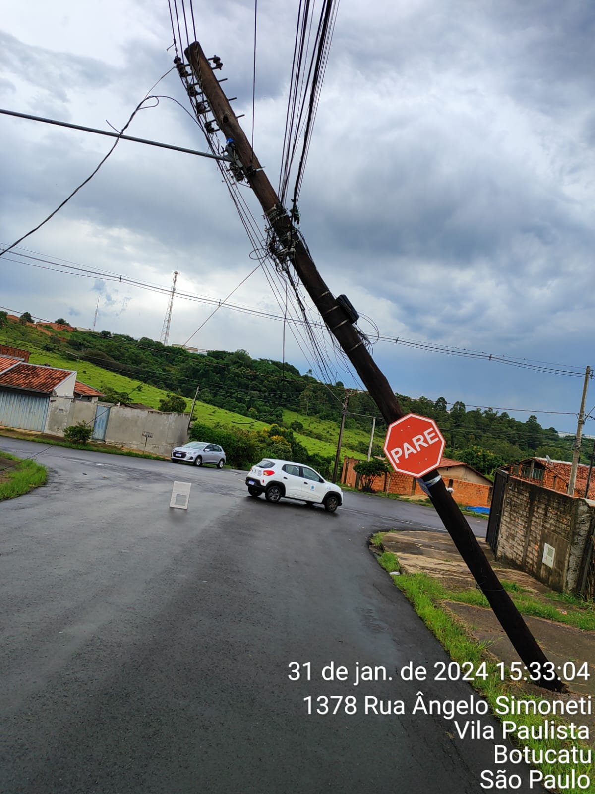 Na Rua Ângelo Simonetti, Vila Paulista, um poste de energia elétrica sucumbiu ao forte vento, ocasionando a interdição da via. A CPFL promove trabalhos de reparos.