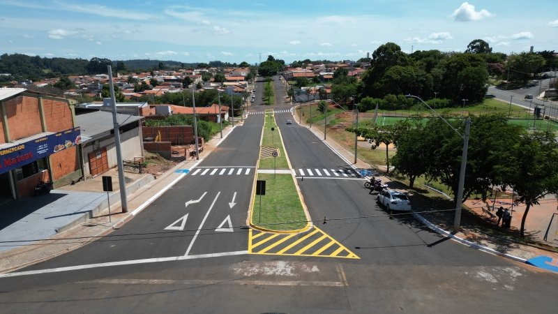 São 230 metros de avenida com canteiro central, drenagem e asfalto