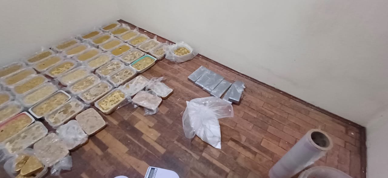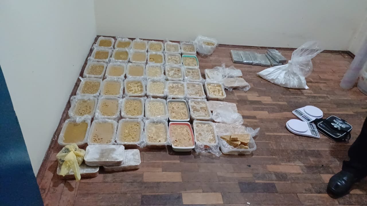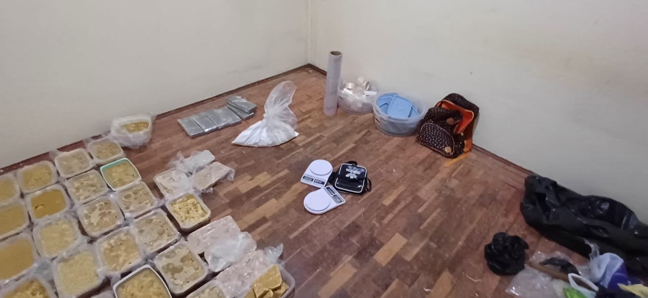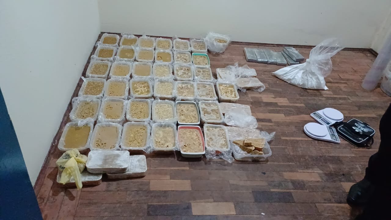 Um terceiro homem que estava no sítio conseguiu fugir pela mata. Policiais trabalham na identificação do traficante. No interior do sítio foram encontradas ferramentas e utensílios para refino de droga. Em um quarto estavam armazenados 46 tijolos de crack, 6 tijolos de maconha, além de cocaína e outros entorpecentes.