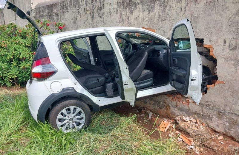 O carro colidiu contra o muro de uma residência, fazendo com que parte invadisse o quintal. Apesar do impacto, nenhum morador foi atingido.