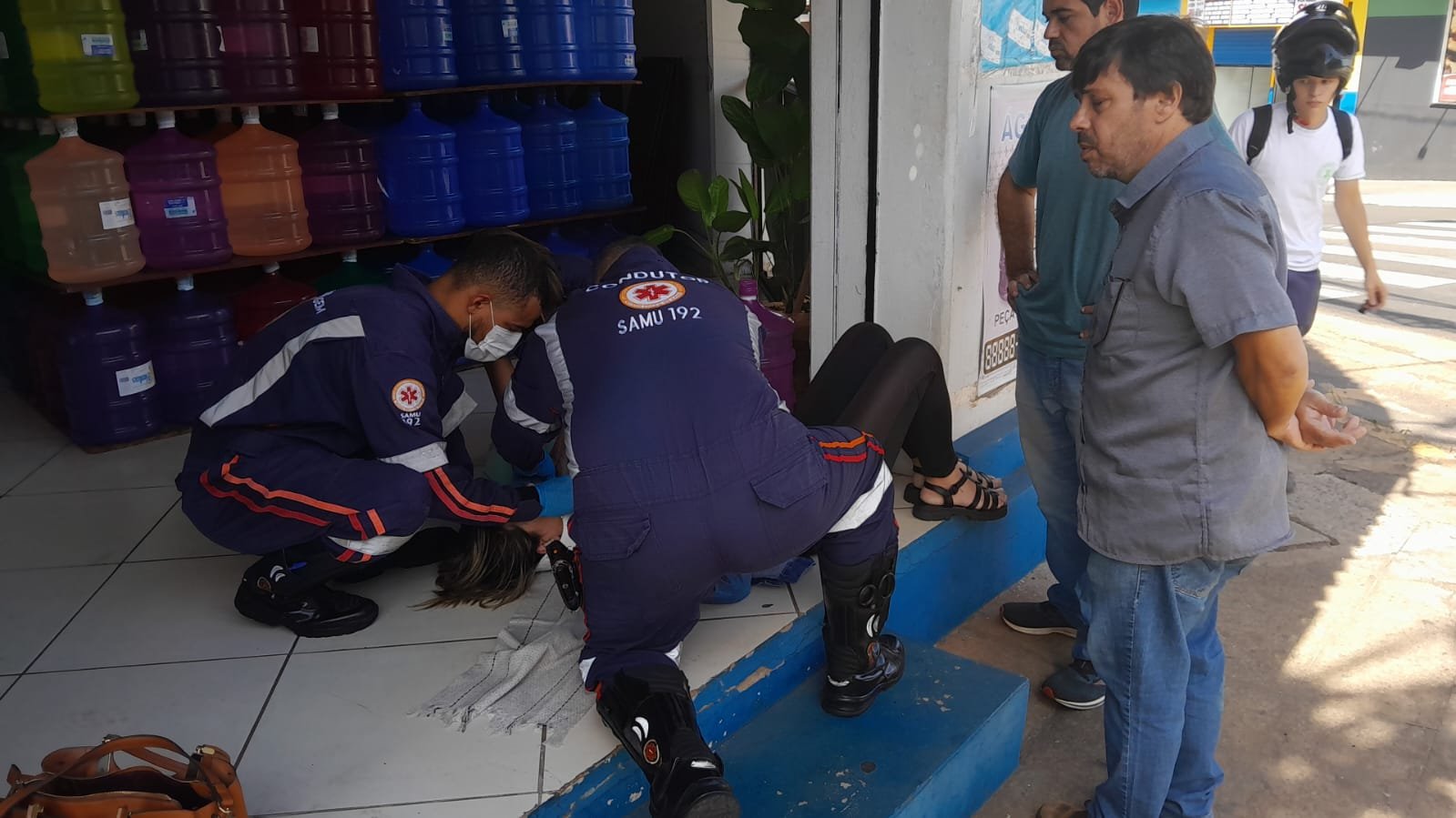 A moto colidiu antes com uma viatura da Polícia Civil que passava ao lado. Ao cair, a motociclista chegou a bater parte do corpo contra o solo, sendo necessário socorro médico.