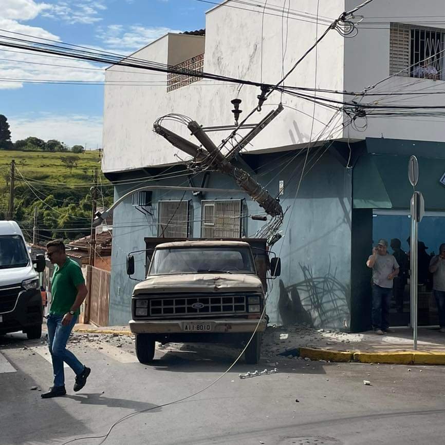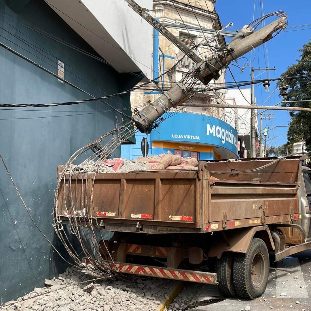 Um caminhão teve falha no sistema de freio e atingiu poste no centro de São Manuel na manhã desta segunda-feira, 3 de junho.