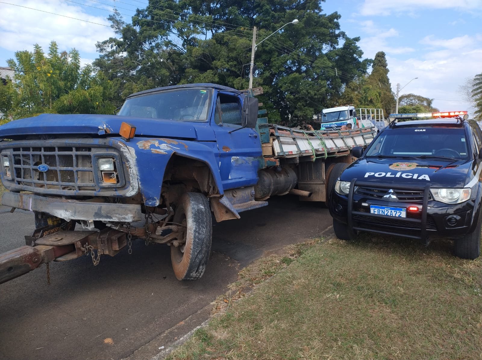 Caminhão com trilhos de trem furtados é abandonado após acidente na Rondon