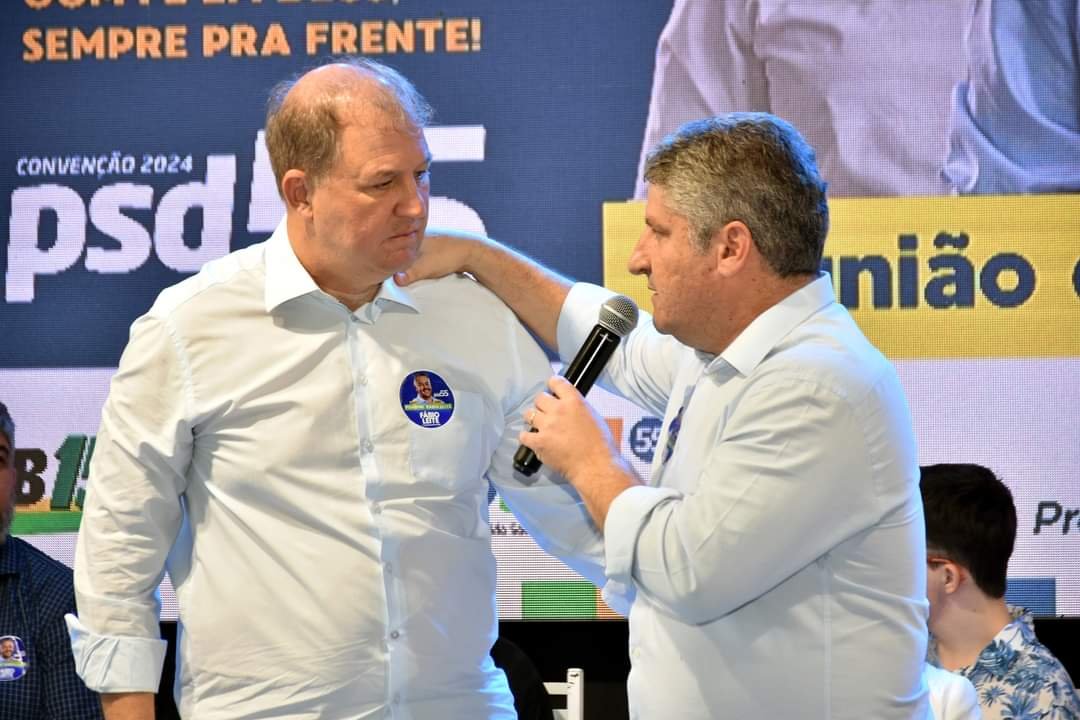Fábio Leite (PSD) oficializou sua candidatura à Prefeitura de Botucatu, neste domingo, 4, ao lado de seu pré-candidato a vice-prefeito, André Spadaro (Republicanos).