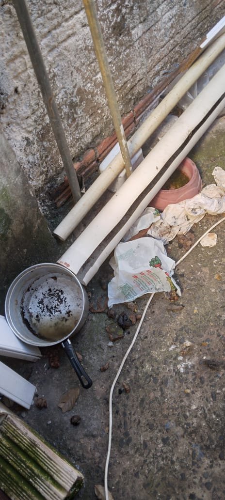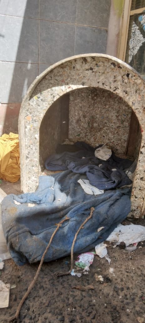 O animal estava em um corredor externo, sem acesso a comida ou água, desnutrido e infestado por carrapatos. A veterinária confirmou os maus-tratos no local.
