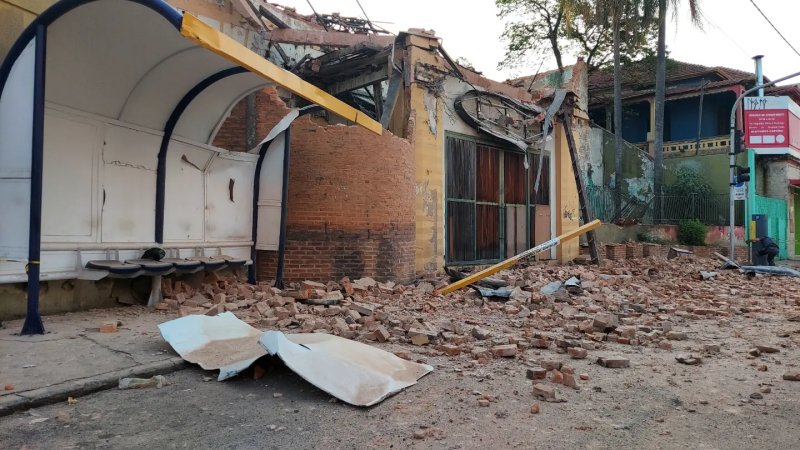 Desabamento do casarão ocorreu às 17h13, quando o telhado cedeu