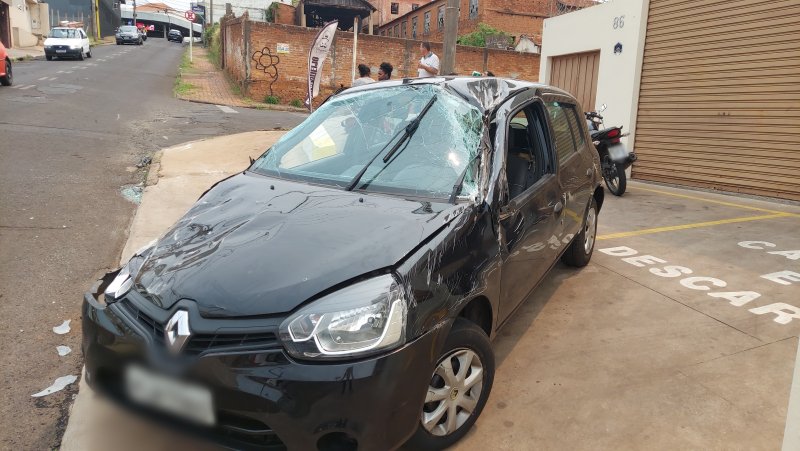 Colisão entre dois carros terminou em capotamento no início da tarde dessa quinta-feira, 3 de outubro, na Rua Tiradentes, centro de Botucatu.