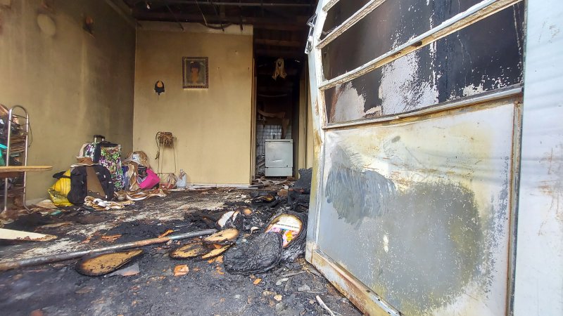O morador conseguiu escapar do incêndio pelos fundos da residência, salvando seus dois cachorros. Corpo de Bombeiros foi acionado para combate e rescaldo das chamas.