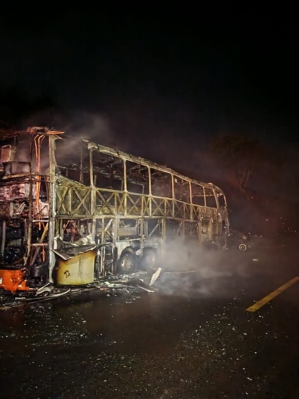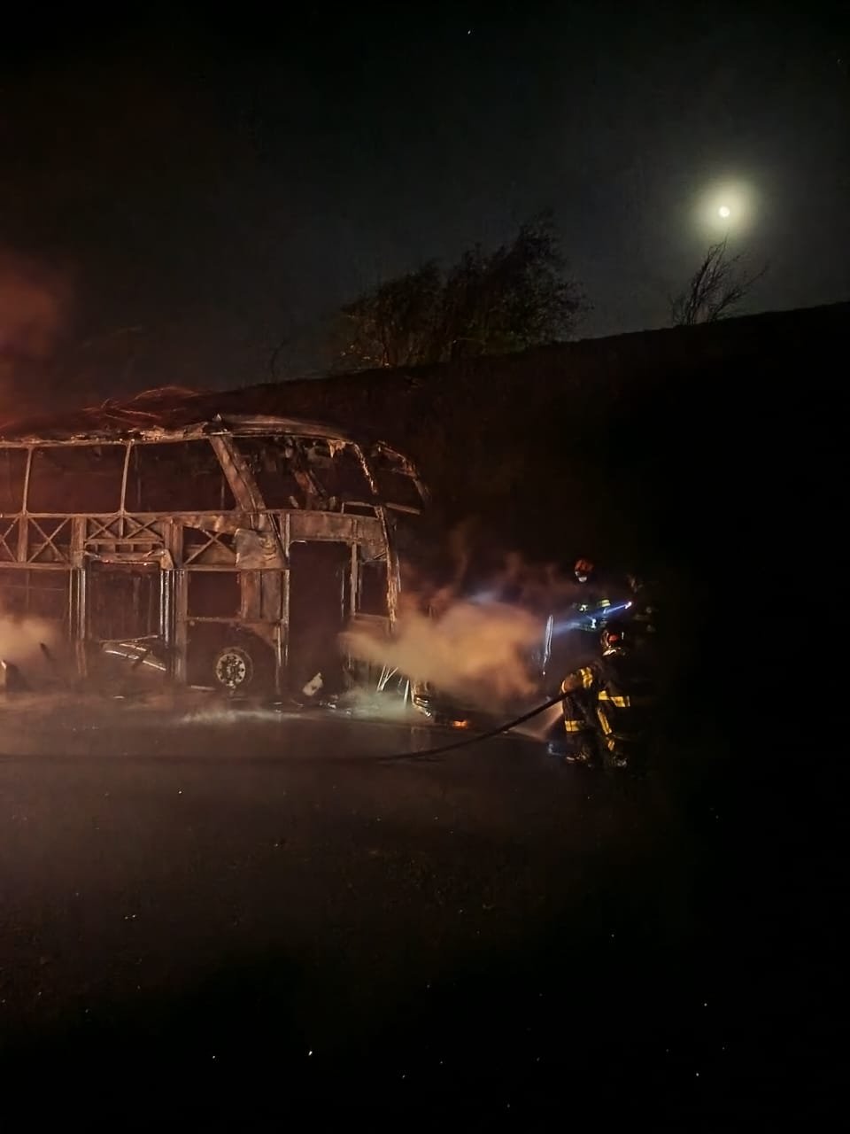 Já os passageiros e motorista do ônibus conseguiram sair a tempo, sendo que duas pessoas estão com ferimentos moderados.