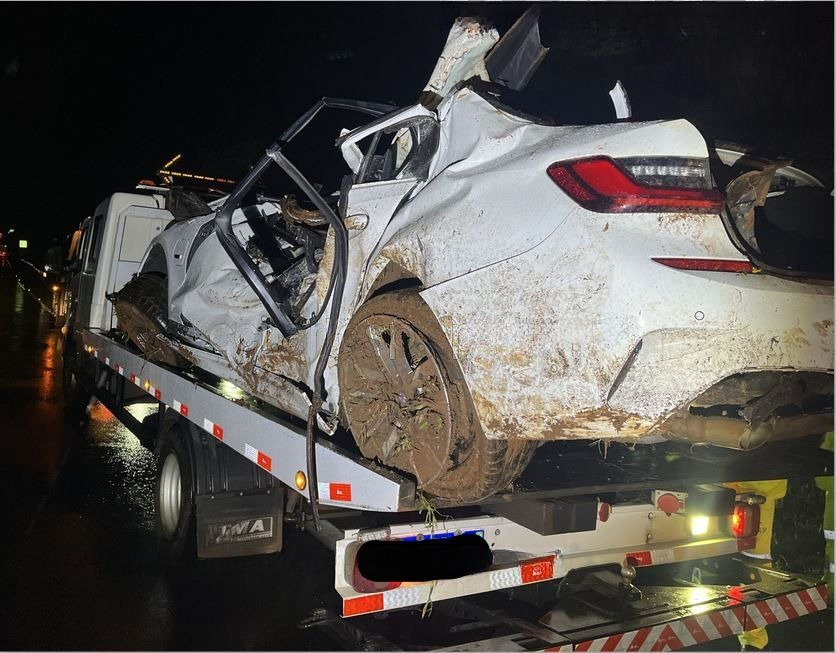 BMW aquaplana em rodovia, bate em árvore e motorista morre