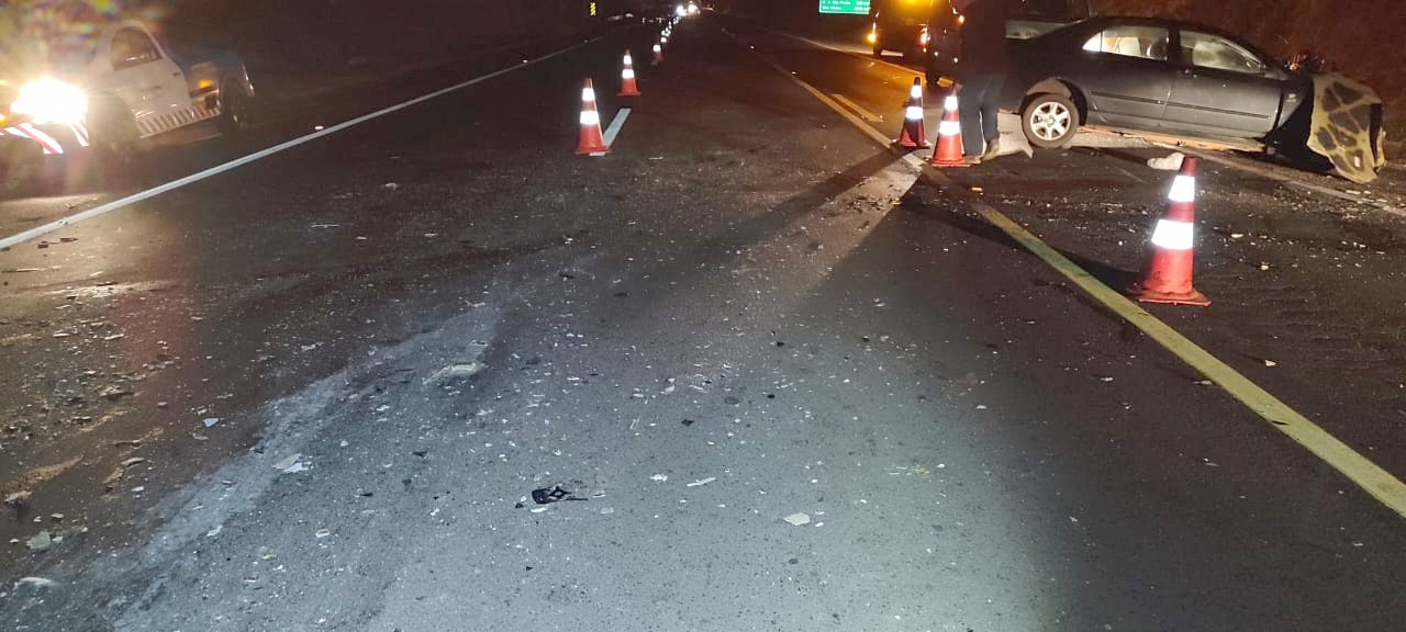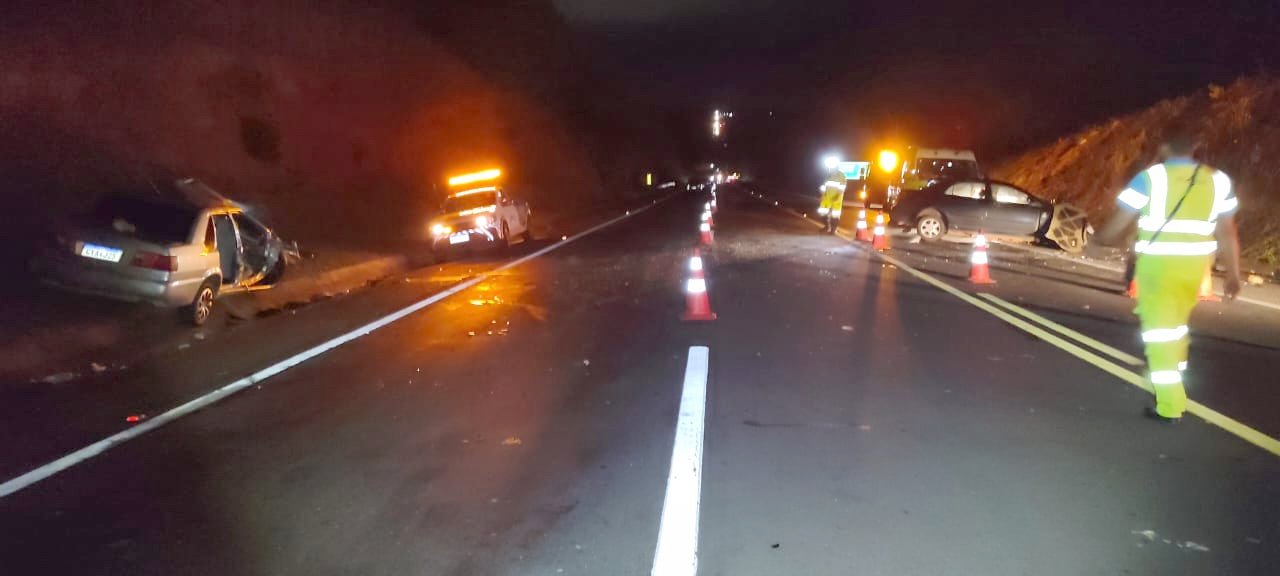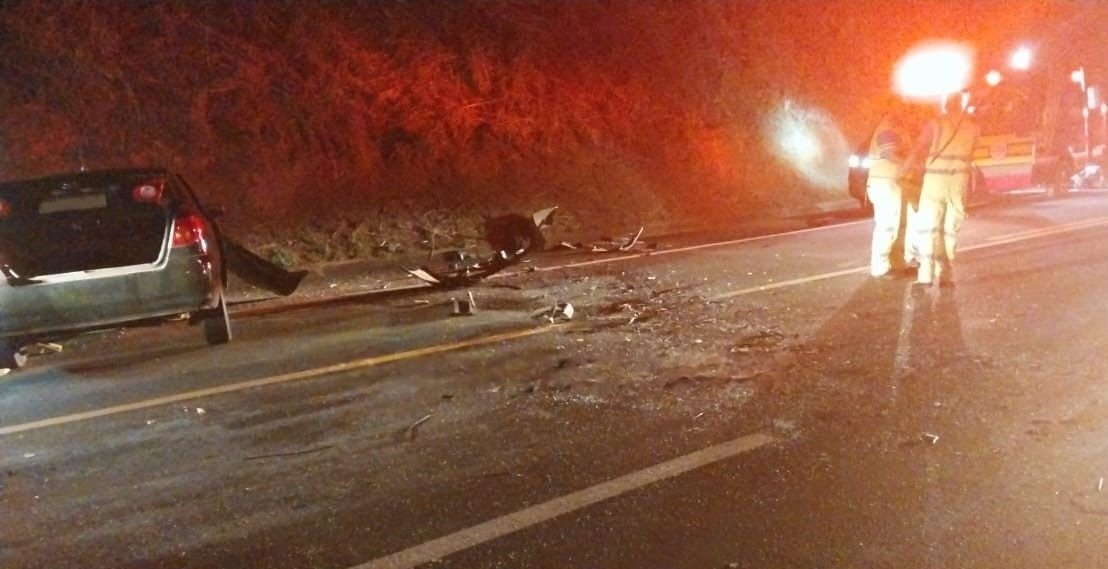 A colisão entre um Toyota Corolla e um Volkswagen Santana ocorreu por volta das 19h10, no quilômetro 568, em Osvaldo Cruz.