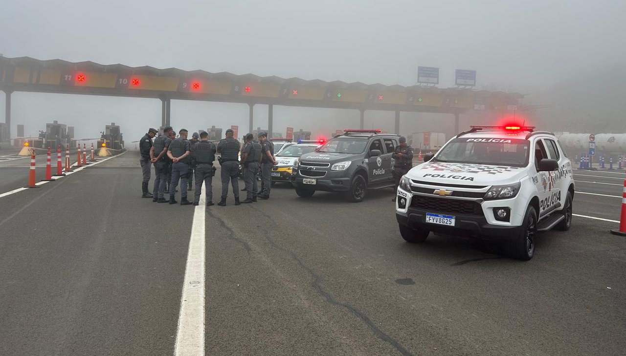 Ação ocorreu na praça de pedágio de Itatinga, com participação do 12° Batalhão e dos Policiais Militares Rodoviários. Foram vistoriados 30 veículos entre caminhões, carros de passeio e ônibus.