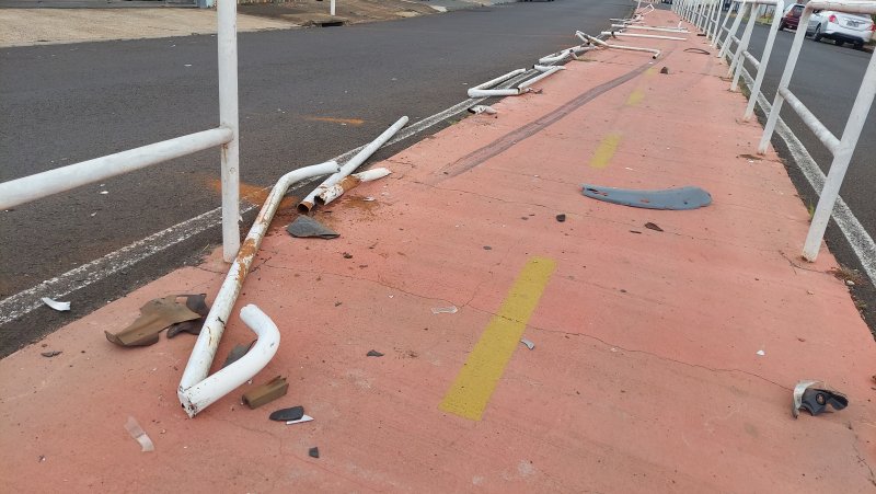 Veículo arrancou nove grades de proteção instaladas na ciclovia do Jardim Paraíso