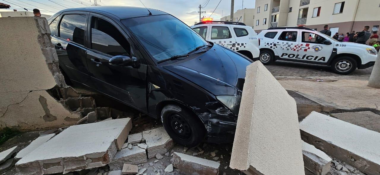 O condutor dirigiu-se até o Residencial Cachoeirinha, onde colidiu contra o portão principal de acesso e abandonou o veículo.