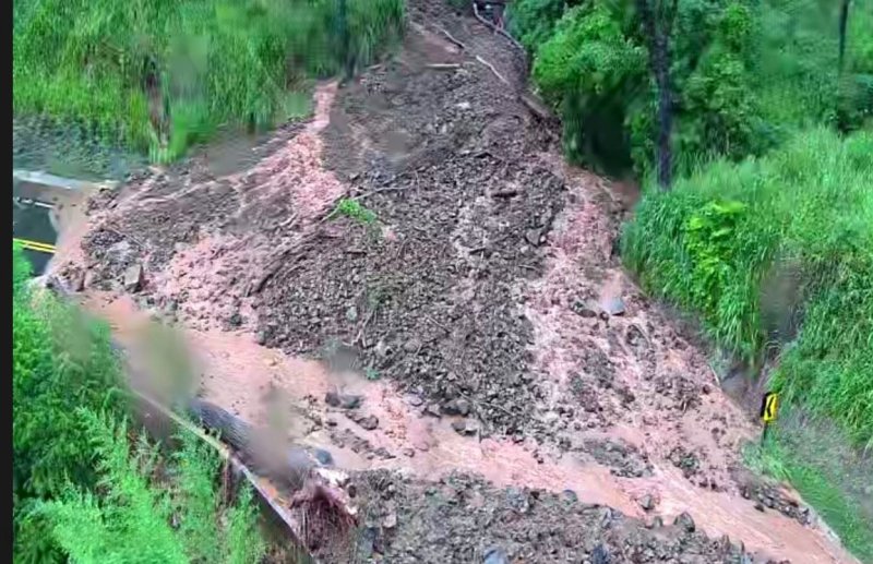 Ao menos cinco quilômetros de pista (km 233 ao km 238) estão com o tráfego de veículos impedido devido ao deslizamento de terra e pedras, provocado pela chuva que caiu pela região.