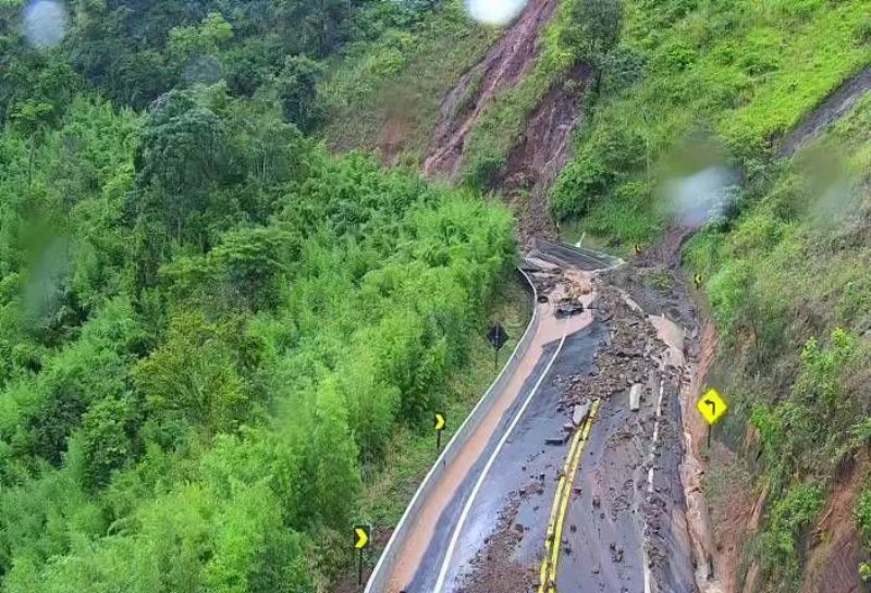 Enxurrada provocada pela queda de água também arrancou pedaços do asfalto da pista. Equipes da concessionária responsável pelo trecho acompanham a situação para a remoção dos dejetos. Não há previsão de liberação do trecho, que é de pista simples.