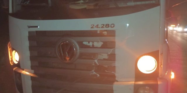 Não houve tempo para frenagem ou mesmo desvio do caminhão, que atingiu a vítima. Ela foi arremessada para a outra parte da pista e o caminhão parou no acostamento. A força do impacto danificou parte da frente do veículo.