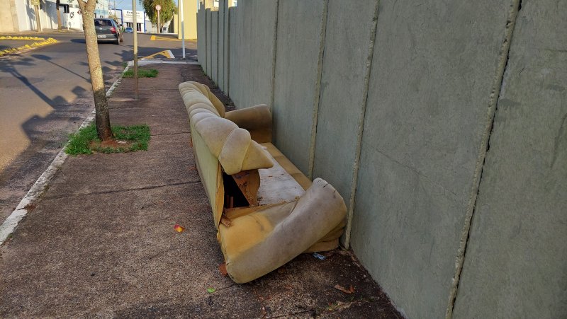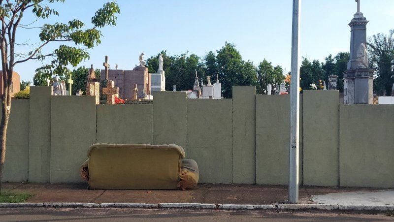 No domingo, 12 de janeiro, frequentadores e transeuntes se depararam com um sofá deixado em frente ao cemitério. Não há informações sobre a autoria do descarte, mas câmeras instaladas no entorno poderão auxiliar na identificação.
