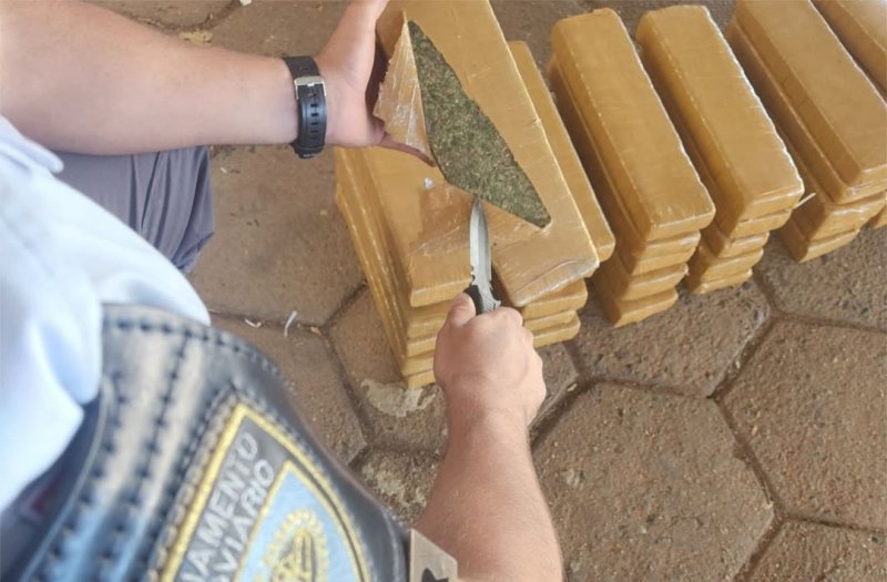 Durante a ação, houve a determinação para que um Fiat Argo e um Volkswagen Saveiro, com três ocupantes, parassem para averiguação. Na vistoria, 104 tijolos de maconha foram encontrados escondidos no Fiat.