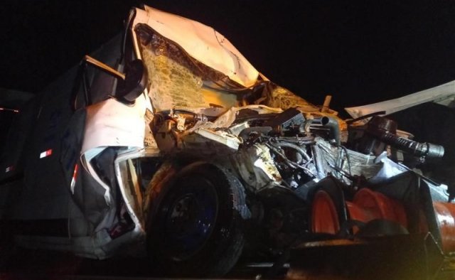 O motorista de um utilitário perdeu o controle de direção, vindo a provocar colisão contra caminhão. Acidente ocorreu na noite de quarta-feira, 15 de janeiro, na Rodovia Castello Branco (SP 280), em Cesário Lange.
