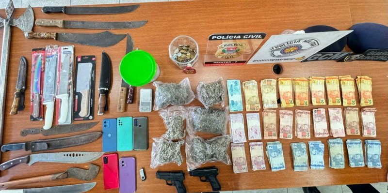 Em um terceiro endereço, na região central da cidade, cinco aparelhos celulares e R$ 3.831,95 em dinheiro foram localizados em posse de um suspeito. Os itens foram apreendidos para análise e as autoridades investigam se há relação com crimes em andamento. A Polícia Civil trabalha para esclarecer se os valores possuem conexão com atividades criminosas identificadas durante a operação.