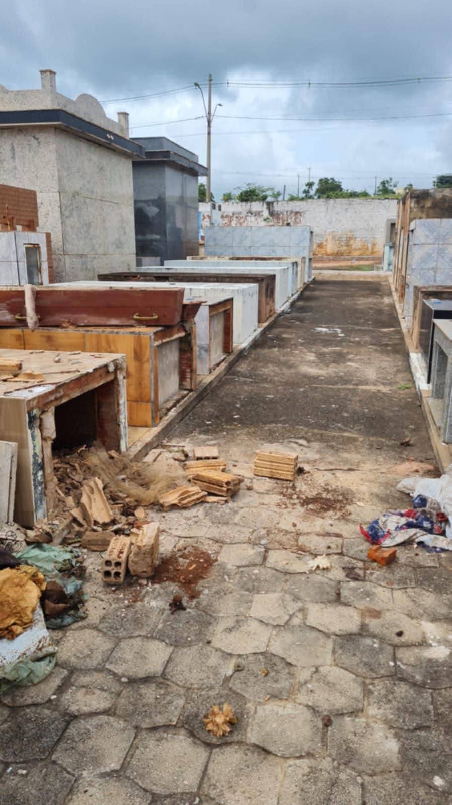 Desconhecidos arrombaram totalmente o jazigo e quebraram três caixões. Levaram os ossos de três pessoas sepultadas no espaço. Não há informações de possíveis suspeitos.
