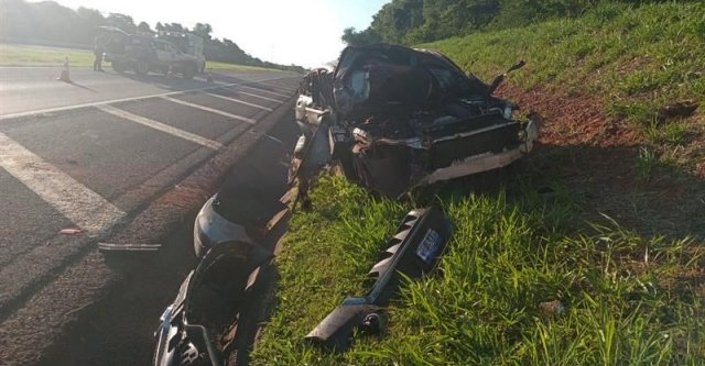 Desgovernado, o carro bateu contra o talude no canteiro central. O impacto destruiu o veículo, matando os dois ocupantes do Mercedes. Ainda não há identificação das vítimas.